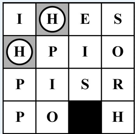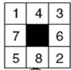 ◼ 一个木块相邻一个或两个其他木块跳入空格,耗散值(成本)为跳过的木块数;