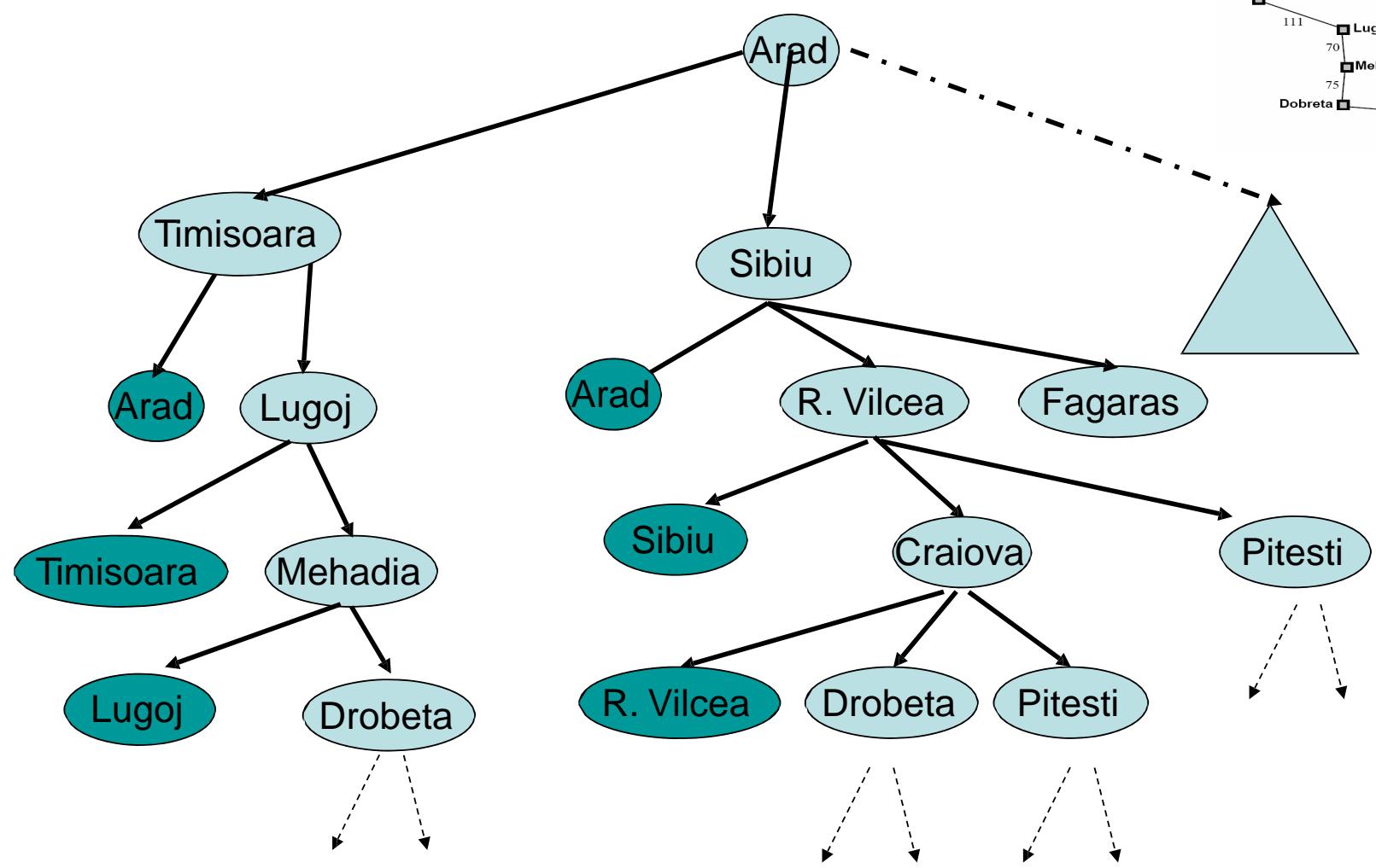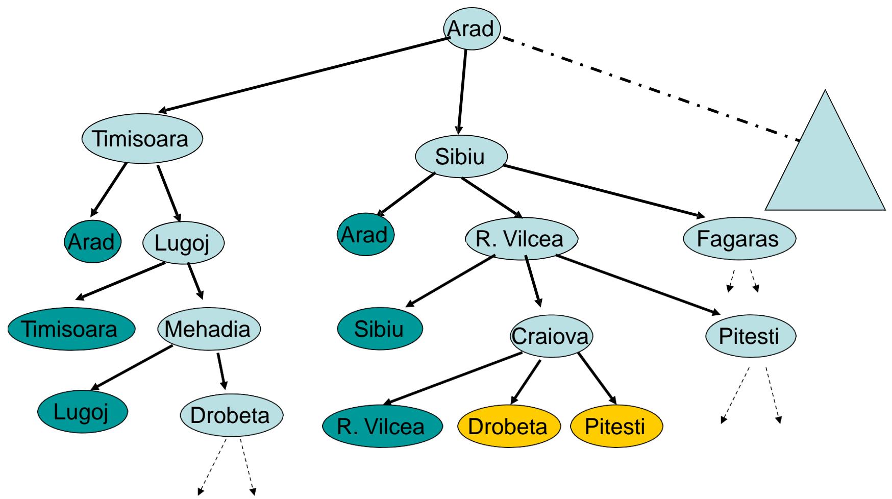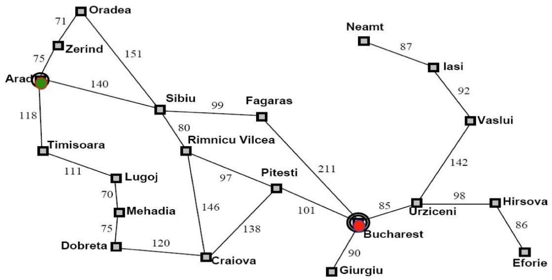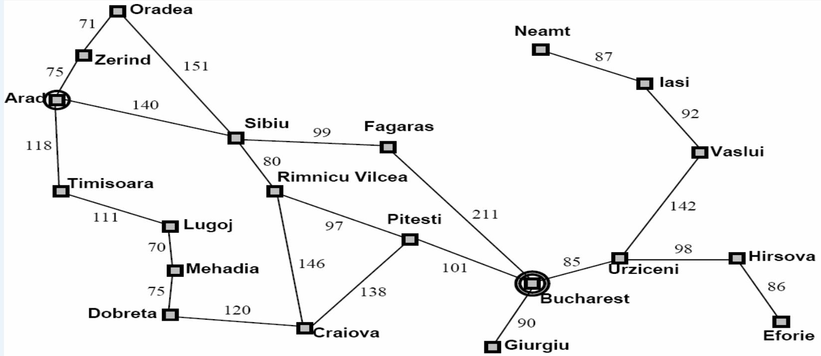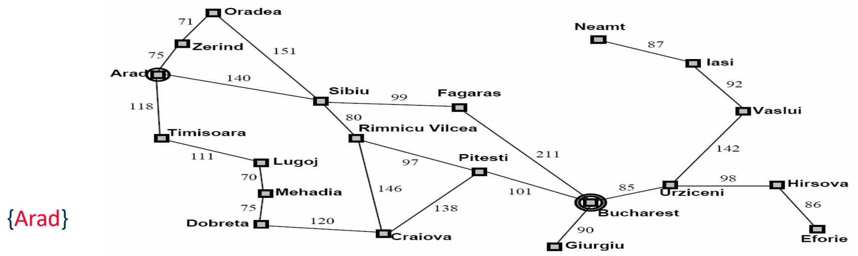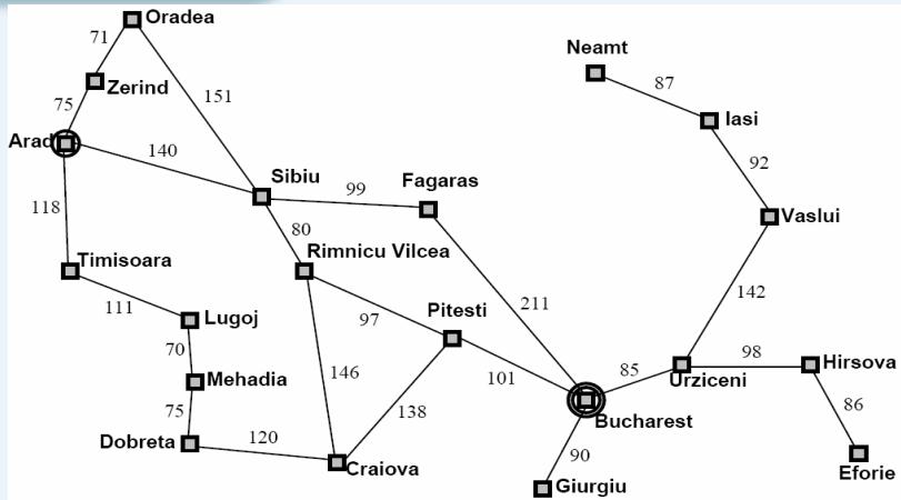 问题的解:旅行路线,即从Arad到Bucharest途径城市组成的序列