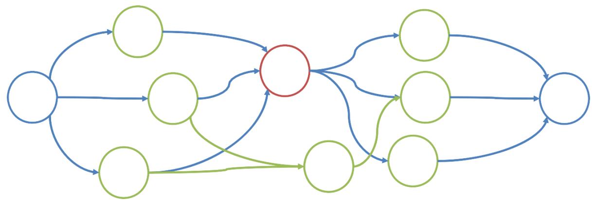 在统计语音识别过程中,计算机将用户的每个发音转化成若干可能的词,构成如下的词图(比如sense、sentence)。语音识别的任务就是要在这样的词图中寻找最有可能组成合理句子的组合。