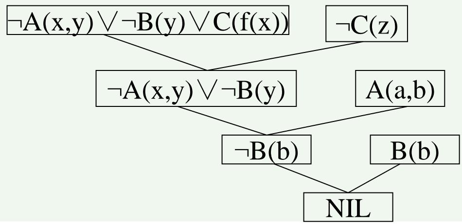 上述归结过程如右图归结树所示。
