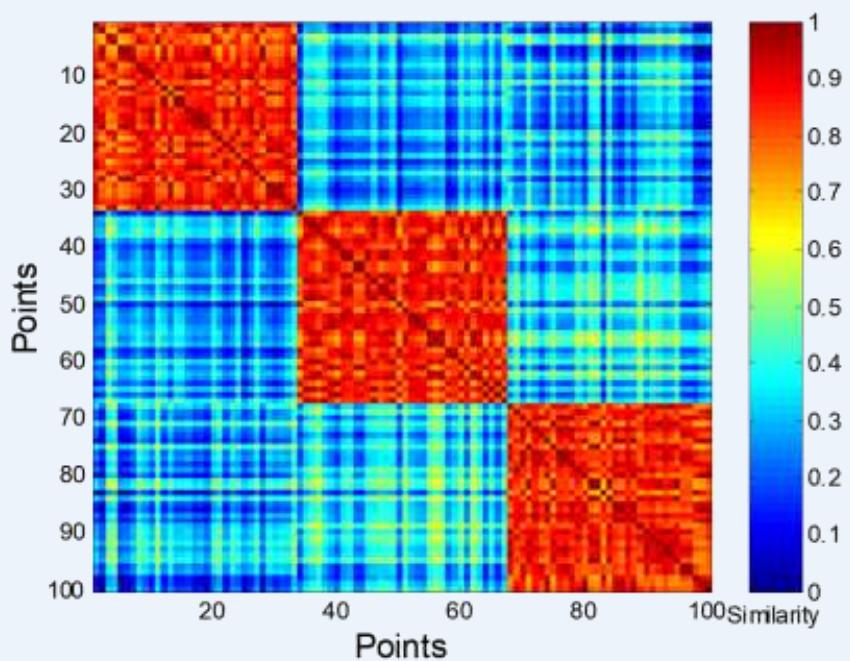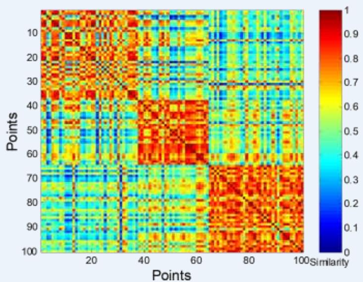 • An entry is 0 if the associated pair of points belongs to different clusters