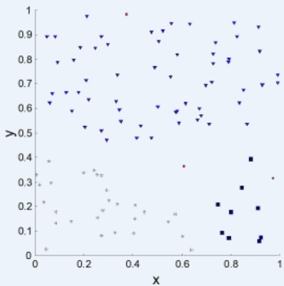 Determining the clustering tendency聚类趋势 of a set of data, i.e.,distinguishing whether non-random structure actually exists in the data先看看是不是真的有簇结构存在