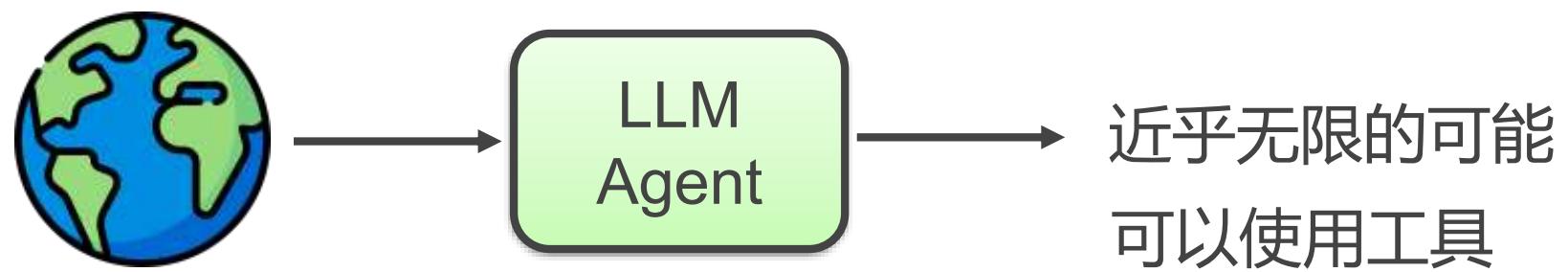 这个工作的具体流程,它可以由预定的规则实现-workflow 或者 也可以交由LLM主动自主选择。