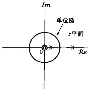 仅有两个极点,均在单位圆内。