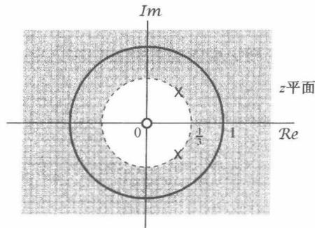 图10.3 当 时,例10.2的零-极点图和收敛域