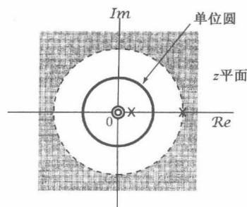 图10.2 时,例10.1的零-极点图和收敛域