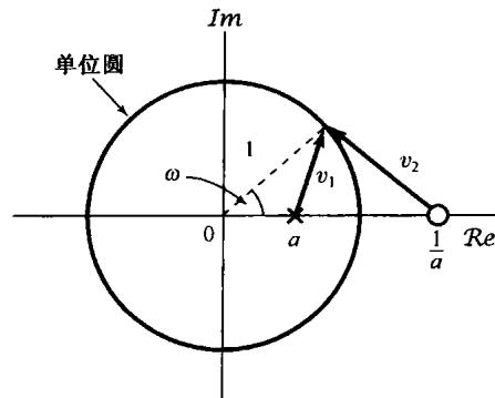 证明: 有一个极点(在单位圆里)和一个零点(在单位圆外)。