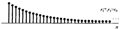 这个性质的证明和9.2节性质4的论述是相同的。一个右边序列就是在某一个 值,如 以前是零。如果 的圆位于收敛域内,那么 就是绝对可和的。现在考虑 , ,这样 随 的增加衰减得比 还要快。正如图10.7所示,当 为正值时,这个加快了衰减的指数将进一步使序列值衰减,而负的 值却不能使序列值成为无界,因为 是右边序列,尤其是 时 。因此, 是绝对可和的。