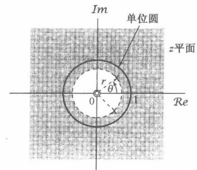 图10.1 复数 平面。当变量 在单位圆上时, 变换就变为傅里叶变换
