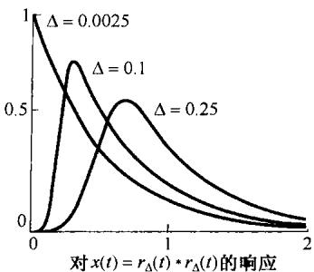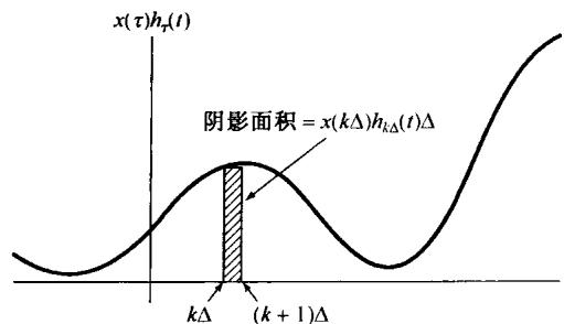 式(2.6)和前面给出的式(2.3)的含义是类似的,不过现在情况下是线性时不变系统,由于在时刻 加入的输入 引起的响应 就是 移位并经加权的结果。与前面一样,真正的输出是所有这些响应的叠加。
