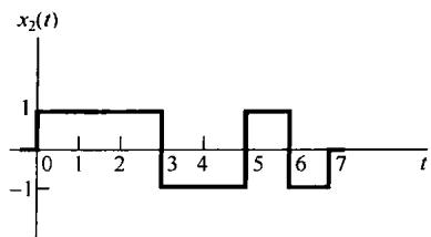 2.66 设图P2.66中的 , 和 是三个线性时不变系统的单位冲激响应。这三个信号称为沃尔什函数(Walsh function)。由于沃尔什函数很容易用数字逻辑电路产生,而且与这些函数中的每一个相乘都可以用一种极性倒换开关的简单方式来实现,因此具有很大的实际意义。