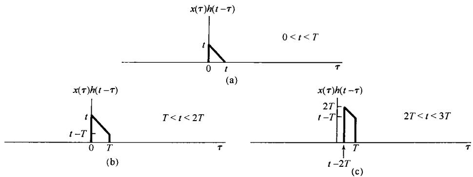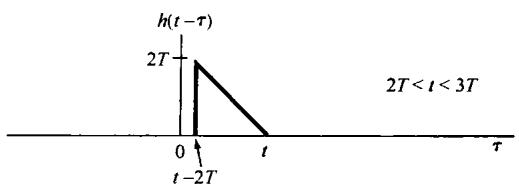 对于某个正的 的值,这两个信号如图2.8所示。为了计算这两个信号的卷积,将 分成5个不同的区间来考虑比较方便,如图2.9所示。