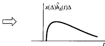 因此,图2.1中这5个序列的和就等于在 区间内的 。若把这样的表示式扩大到包括更多的移位加权脉冲,就可以得到一般的表示式为