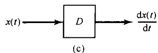 因此,一般来说,当且仅当式(P2.71-1)中的三个表达式都有意义(即用线性时不变系统来解释有意义)时,卷积的结合律性质才成立。例如,在(a)中先对一个常数微分,然后再积分是有意义的;而先对常数从 积分,然后再微分却无意义,这是因为在这种情况下结合律性质被破坏了。与上述讨论密切相关的是逆系统的问题。现考虑单位冲激响应 的线性时不变系统。如同在(a)中看到的,有一些输入,比如 ,使该系统对它们的输出为无穷大。因此,研究把这种输出取逆来恢复输入的问题就毫无意义了。然而,如果只限于讨论产生有限输出的输入,也即满足