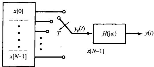 7.42 考虑一带限信号 ,以高于奈奎斯特率对其采样,然后将相隔 秒的各样本按图 P7.42 转换为一个序列 。