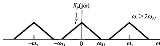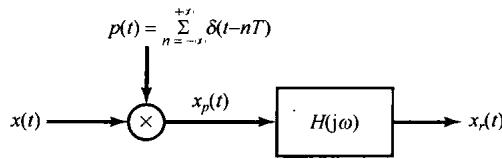 已知这些样本值,我们能用如下办法重建 :产生一个周期冲激串,其冲激幅度就是这些依次而来的样本值;然后将该冲激串通过一个增益为 ,截止频率大于 而小于 的理想低通滤波器,该滤波器的输出就是 。