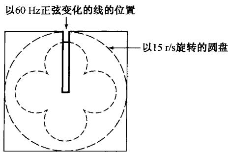7.40 考虑一个圆盘,在该圆盘上画有一个正弦曲线的 4 个周期。圆盘以近似 的速度旋转,因此当通过一个窄缝看时,正弦曲线具有 的频率。整个装置如图 P7.40 所示。设 代表从窄缝看到的线的位置,因而 有如下形式: