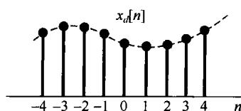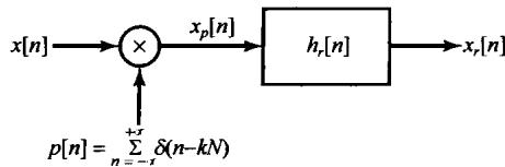 在7.1节中已经看到,一个带限信号,如果采样足够密,那么信号就能完全被恢复。这就是说,通过应用一个低通滤波器在样本点之间的真正内插就可以实现。当考虑图7.4中该低通滤波器在时域中的效果时,把重建 作为一个内插过程就变得愈加清楚了。特别是,输出 为