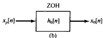 (b) 如图 P7.50(c) 所示, 利用一个合适的线性时不变滤波器 , 可以从零阶保持序列 中完全恢复 。试确定并画出 。