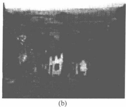 图7.12 (a) 将图6.2的(a)和(g)的照片冲激串采样的结果;(b) 对图(a)施加零阶保持滤波。由于人的视觉系统具有固有的低通过滤作用,其截止频率随距离而减小,因此当从远距离观察时,图7.12(b)中镶嵌的不连续处得到平滑;(c) 水平和垂直方向采样间隔都只是(a)和(b)时的 ,仍用零阶保持过滤的结果