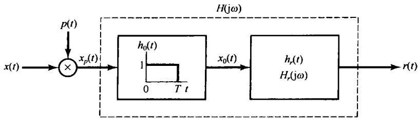 图7.6 作为冲激串采样,再紧跟一个具有矩形单位冲激响应的线性时不变系统的零阶保持