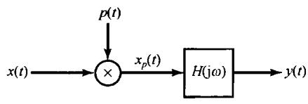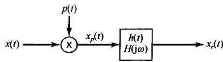 正如在第6章所讨论的,有各种不同的理由表明在实际中一般不用理想滤波器。在任何实际应用中,图7.4中的理想低通滤波器都用一个非理想滤波器 所代替,该 对于所关心的问题来说已足够准确地近似于所要求的频率特性,即 时 , 时 。显然。在这个低通滤波部分,任何这样的近似都会带来图7.4中 与 之间的某些差异,或者说 与 之间的某些差异。这样,考虑到特定应用中所能接受的失真程度,非理想滤波器的选择就很关键了。为了方便,同时也是为了强调诸如采样定理这样一些基本原理,本章和下一章都假定使用这些理想滤波器,但是要明白,在实际中就所讨论的问题来说,这样一个滤波器都必须被一个专门设计的,对理想特性足够近似的非理想滤波器所代替。