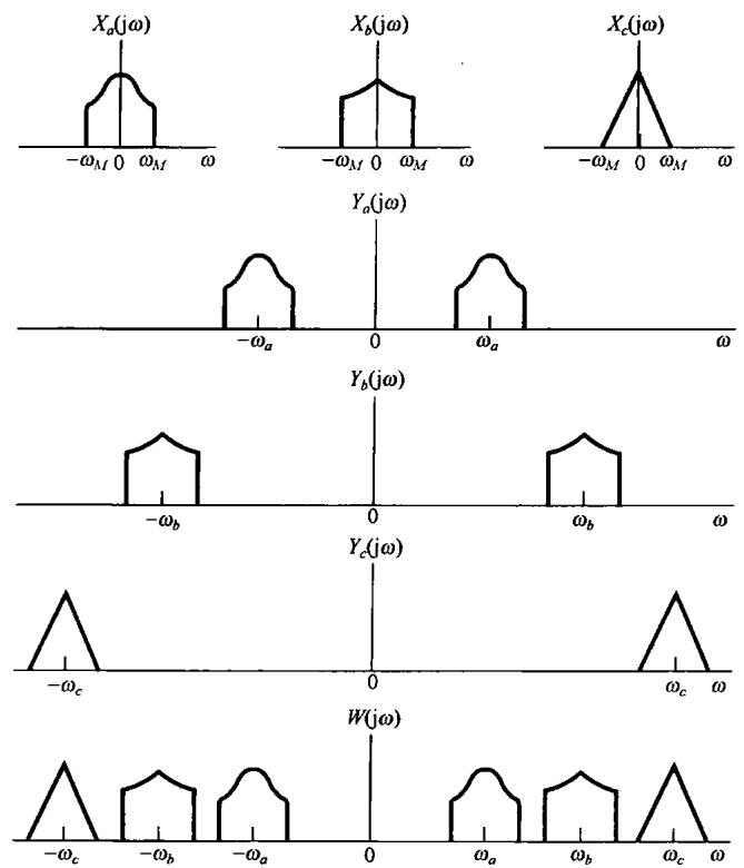 图8.15 利用正弦幅度调制的频分多路复用