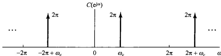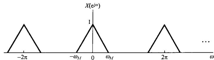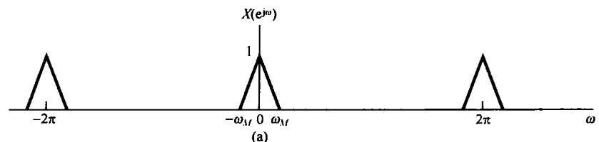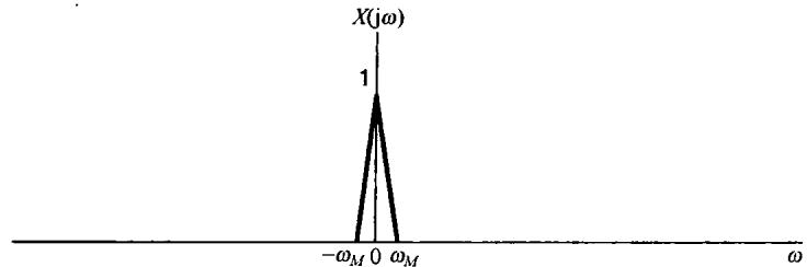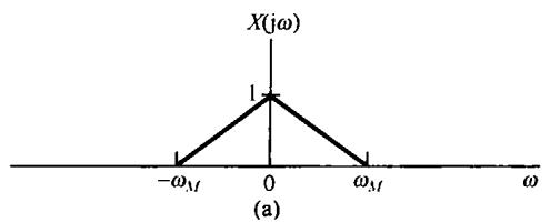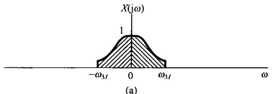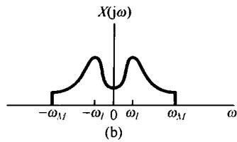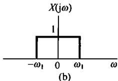 图8.6中示出了 和 的频谱,并看到 可以用一个增益为2,截止频率大于 而小于 的理想低通滤波器从 中恢复出来。该低通滤波器的频率响应在图8.6(c)中用虚线示出。