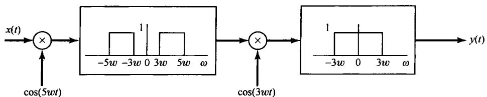 8.36 无线电与电视信号的准确解复用(解调)通常是利用一种称为超外差接收机的系统来实现的,这等效于一种可变调谐滤波器。图P8.36(a)示出了它的基本组成系统。