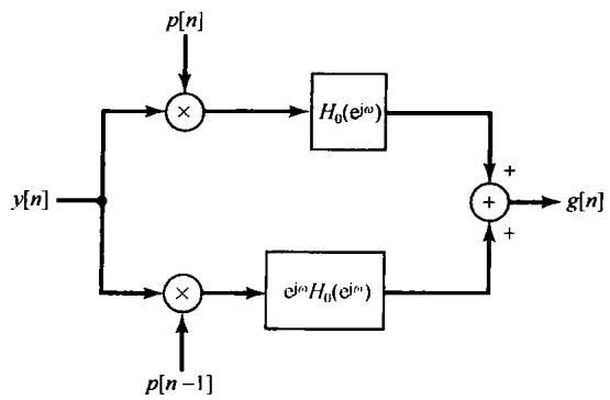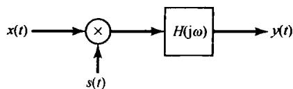 更为简单一些,并且和复指数载波一样有效。事实上,使用正弦载波就相应于仅仅保留图8.2所示系统中输出的实部或虚部部分,这样的系统如图8.3所示。