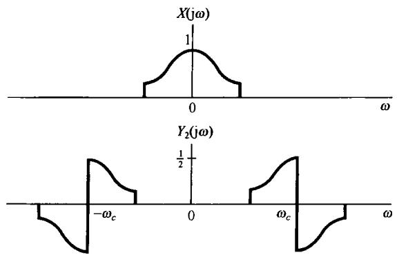 和 的频谱都示于图8.22中。正如习题8.28中所讨论的,若要保留上边带, 的相位特性就应该相反,而为