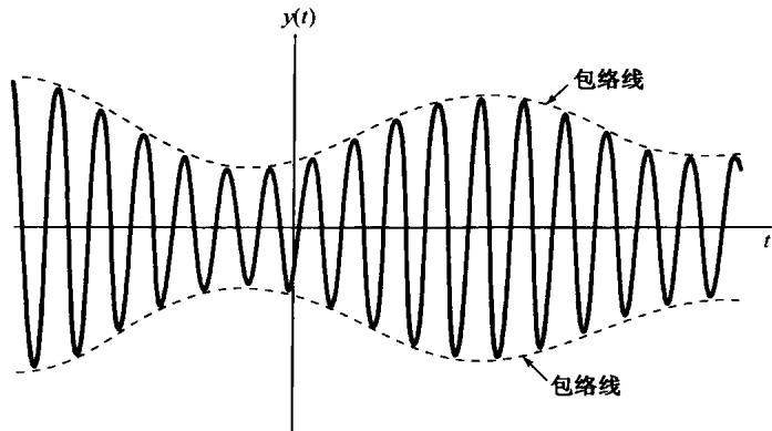 图8.10 调制信号为正的幅度已调信号,图中虚线代表已调信号的包络