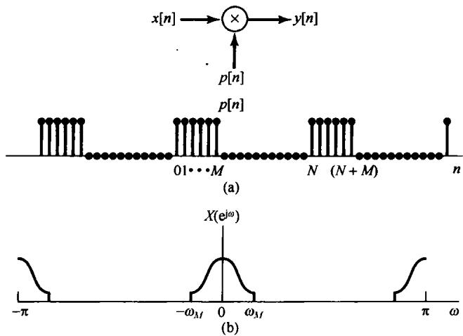 8.32 考虑离散时间信号 ,其傅里叶变换如图P8.32(a)所示。该信号被一个正弦序列所调制,如图P8.32(b)所示。