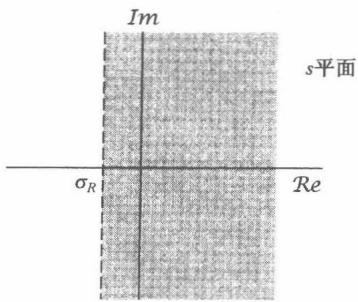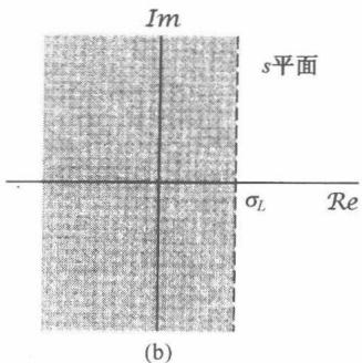 应该注意到,在以上的证明中明显依赖这一事实: 是右边信号。因而即使 ,随着 , 发散快于 ,但是由于 时 , 在负的时间轴方向也不能无界地增长。同时,在这种情况下,如果有某一点 在收敛域内,那么所有位于这个 点右边的点,也就是所有具有更大实部的点,都在收敛域内。为此,这时一般就说收敛域是在右半平面(right-half plane)。