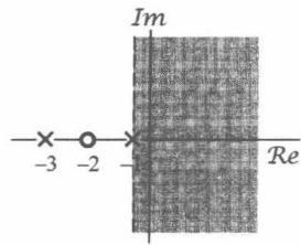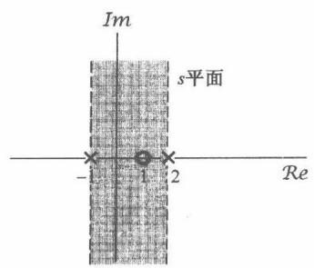 其中,这个收敛域是对 的三项拉普拉斯变换都收敛的 值的集合。该例的零-极点图及其收敛域如图9.3所示。另外,因为 的分子、分母同阶次,所以 在无穷远点既无极点,也无零点。