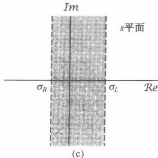 图9.10 (a) 图9.9中 的收敛域;(b) 图9.9中 的收敛域;(c) 的收敛域,这里假定(a)和(b)中的收敛域有重叠