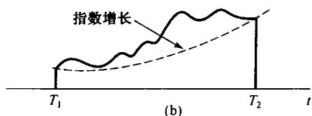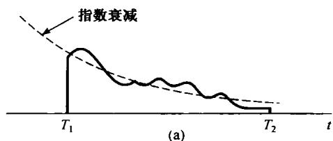 图9.5(a)有限持续期信号乘以衰减指数;(b)有限持续期信号乘以增长指数