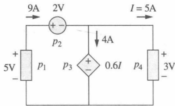 解: p1=(-5v)x(9A)=-45W;