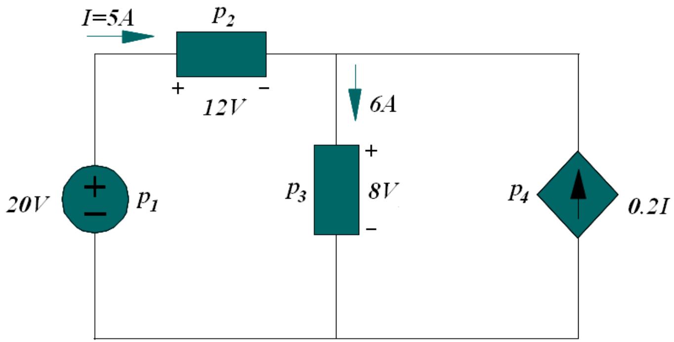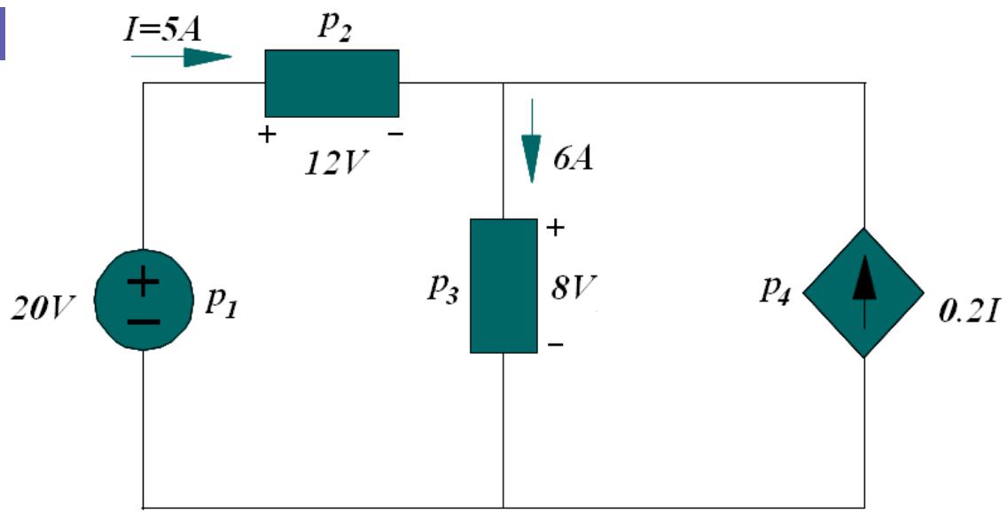 计算图中各元件所发出或吸收的功率。