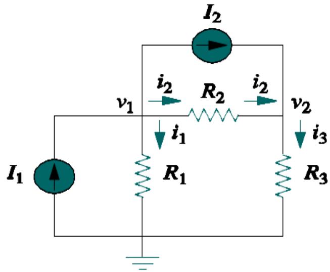 节点分析法是基尔霍夫电流定律( KCL )在非参考节点上的应用。 ( 适用于平面电路和非平面电路。)我们用节点电压来表示结果。