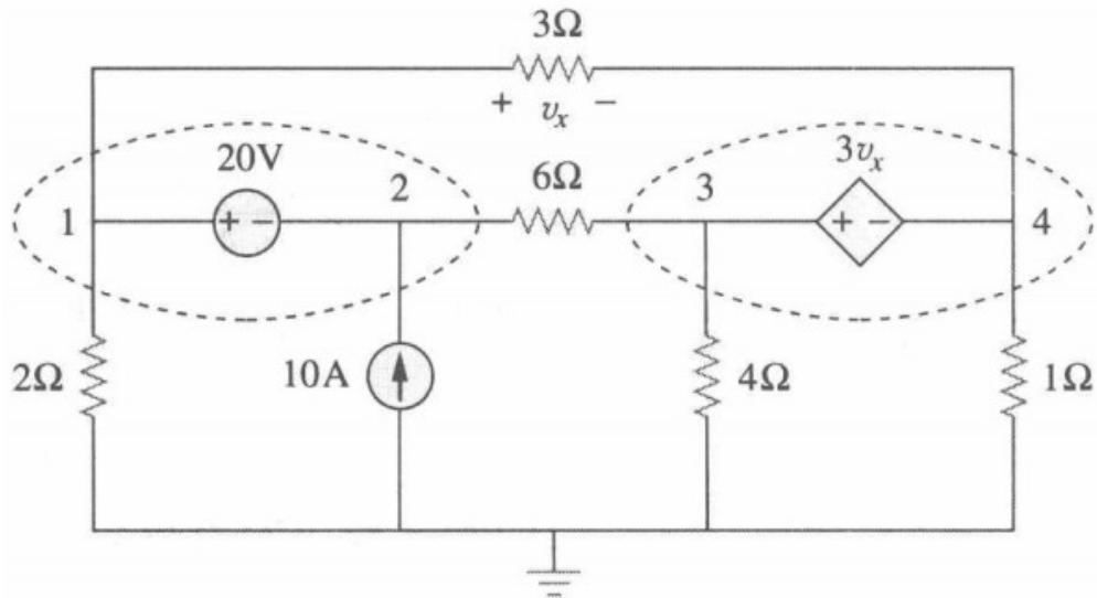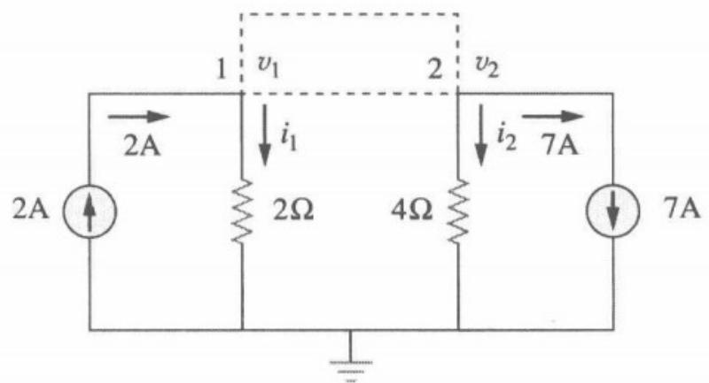 a)对两个超节点应用KCL