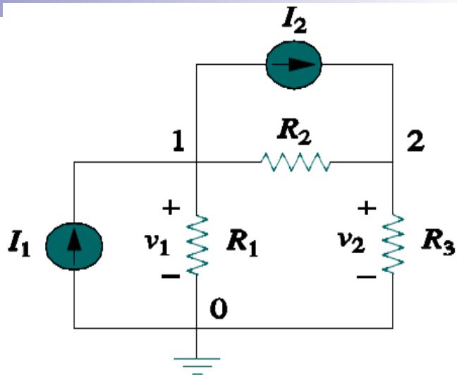 1. 选一个节点作为参考节点,以此点作为电压的参考电位,假设剩下的 n-1 个节点的电压为v1,,v2,……vn-1 。