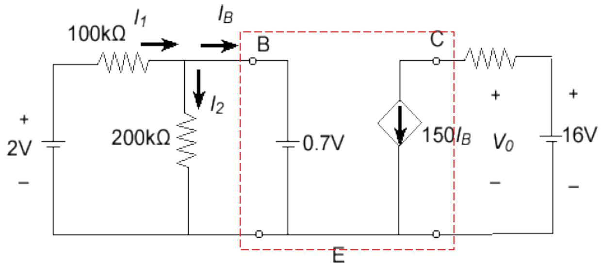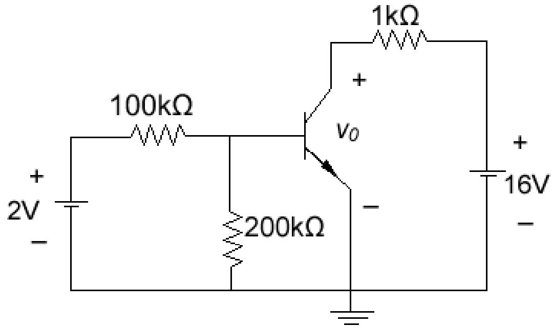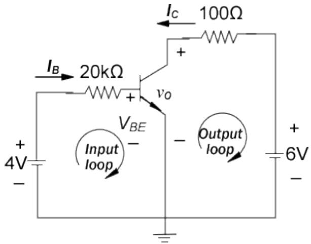 求晶体管电路中的 IB , IC, 和 v0 。 假设晶体管在放大模式(一般工作模式),