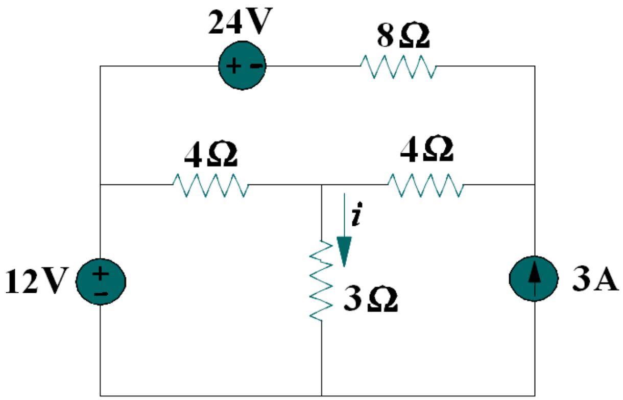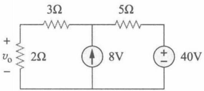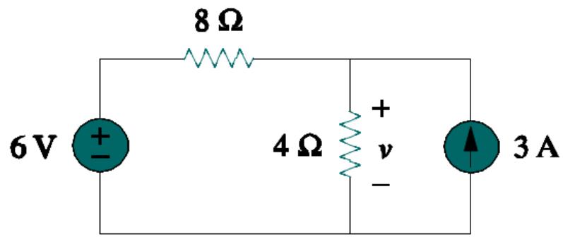 利用叠加定理求出图中电路中的 v 。解决方案 :