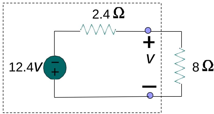 电压源连接 2W 负载时,终端电压为 12V 。当负载断开时,终端电压上升到 12.4V 。 (a) 计算源电压 和内阻 确定电压源连接 8Ω 负载时的终端电压。
