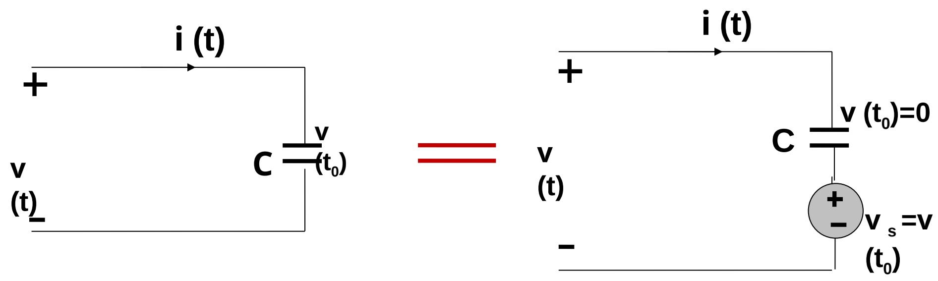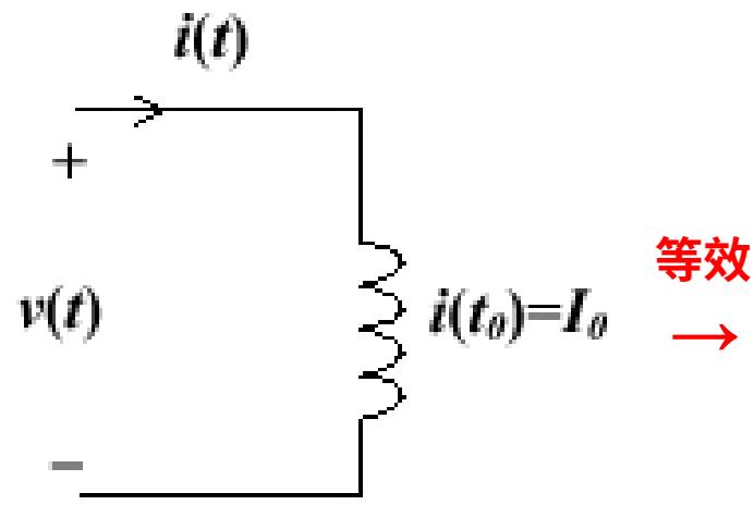 初始电压为 的电容可等效成一个 的电压源和一个初始电压为 0 而电容值相同的电容串联。