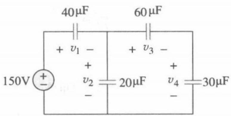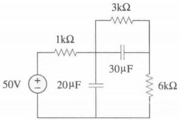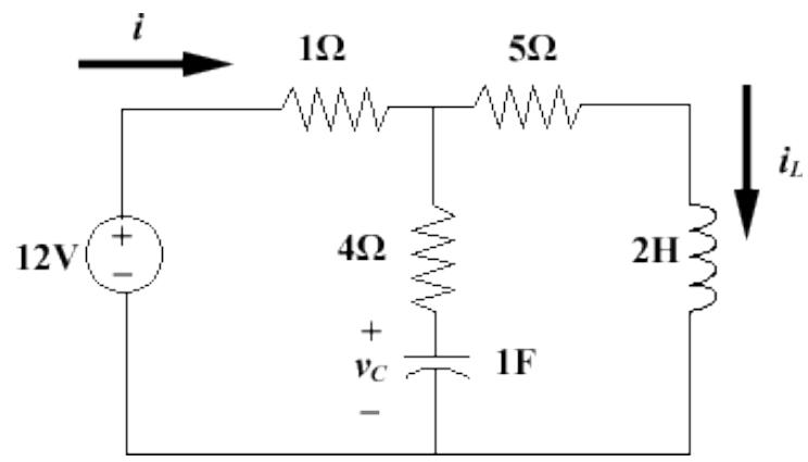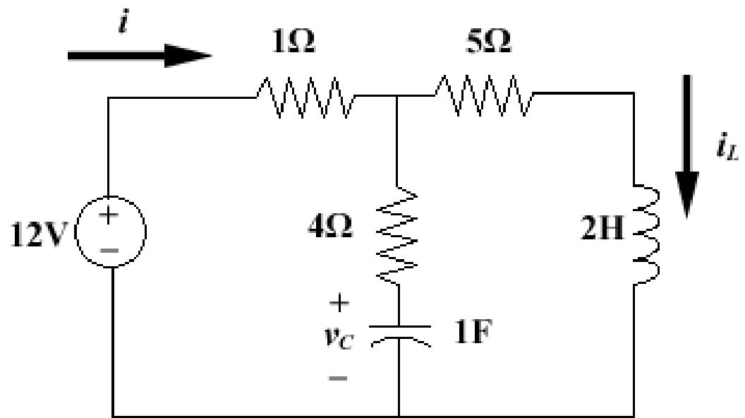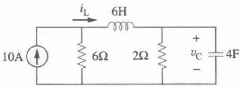 图示电路中,在直流电源下,计算 (a) i , vC , 以及 储存在电容和电感中的能量。