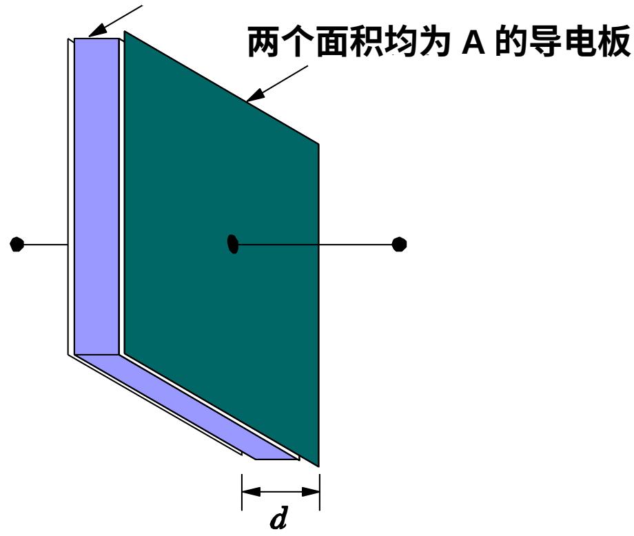 其中,A是每个导电板的表面面积, 是两个导电板之间的距离,e则是导电板间电介质的介电常数。虽然式(6.2)仅仅作用于平行板电容器,但是可以看出,电容常数取决于三个因素: