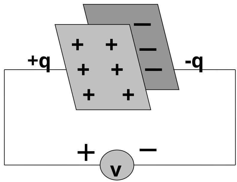 一个电容包括两个极板,中间由绝缘体(或电介质)隔开。