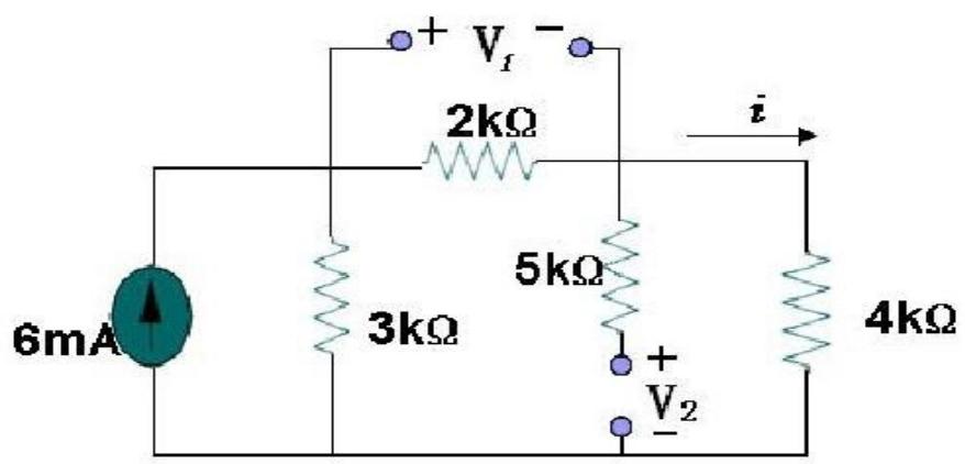 在 2-kΩ 和 4-kΩ 串联的电阻支路上的电流: